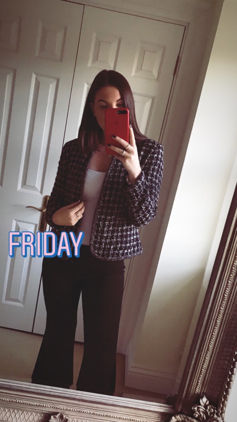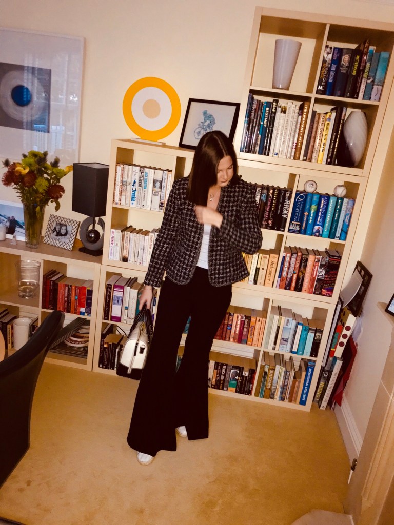 Last night for a family meal at The Chequers Matching Green, a fab country pub that is a favourite of ours, I chose to wear my black flares paired with a pair of Adidas Stan Smith Trainers and a Tweed-style black and white blazer. To finish the look I thought my black and white Kate Spade bag matched perfectly.
